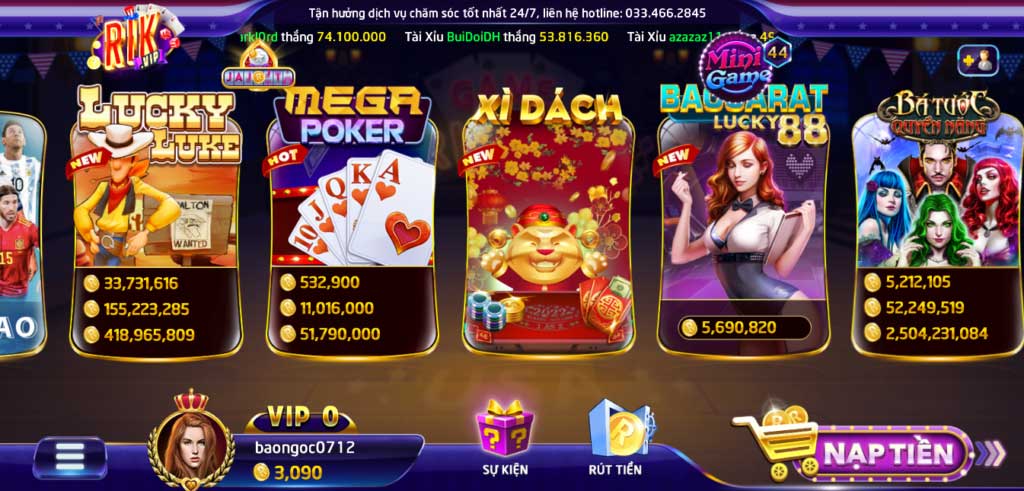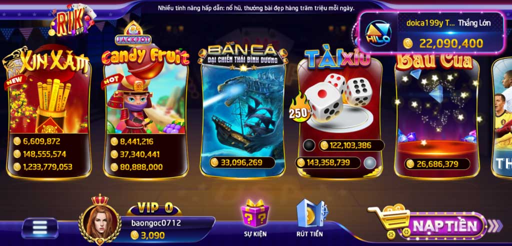 Mức nạp tiền tối thiểu vào Rikvip là 10.000 VNĐ. Bạn có thể nạp qua Ngân hàng, ví điện tử hoặc thẻ cào.