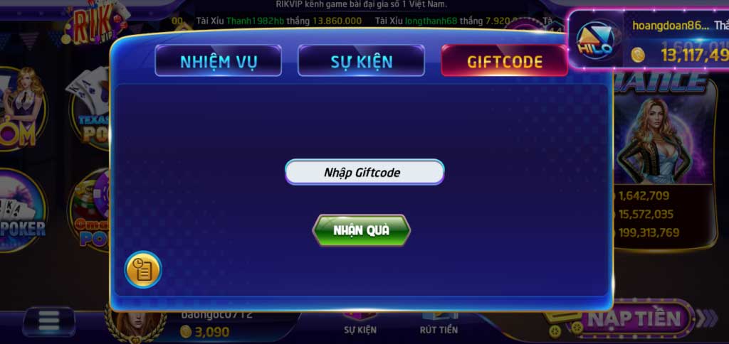 Để gia tăng tiền trong tài khoản, các thành viên nên vận dụng tối đa các chương trình khuyến mã cũng như Giftcode trong game bài Rikvip